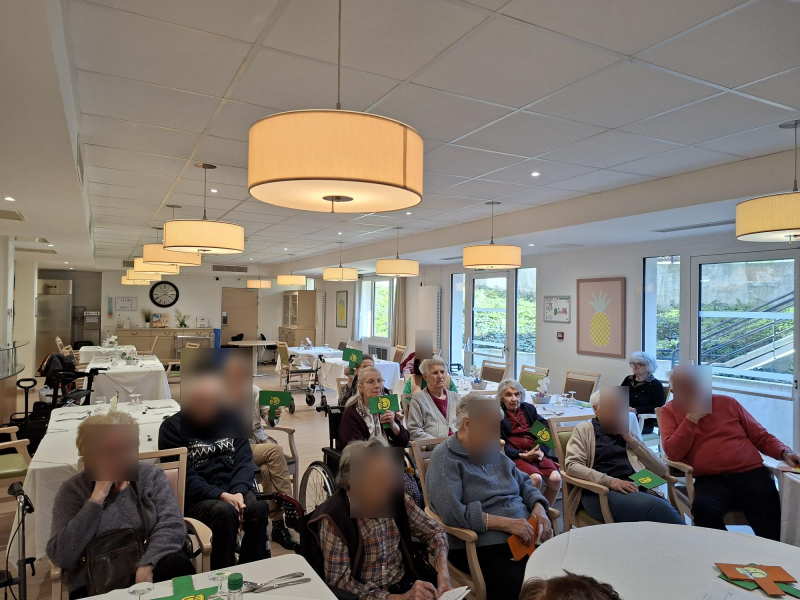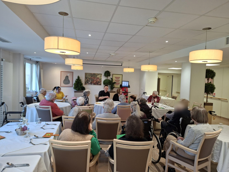 Julien a présenté le nouveau cycle de menus du printemps et ses nouveautés. Les résidents ont pu partager leurs avis, en soulignant les points positifs et les améliorations possibles, les résidents ont pu exprimer leurs avis grâce aux pancartes à disposition.