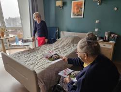 Les résidents ont souhaité m'aider à la distribution du journal. Dans chaque secteur un résident différent m'accompagne pour la distribution. Les résidents qui recevaient le journal étaient contents d'avoir de la visite et les personnes qui distribuaient étaient contents de voir du monde.